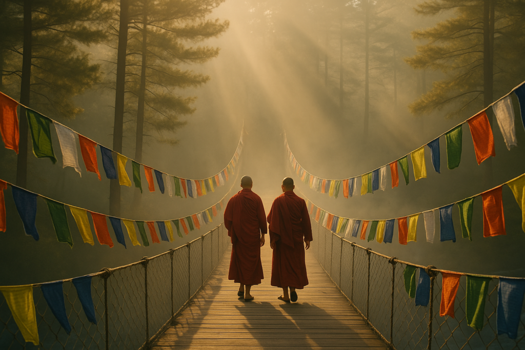 The prayer flags on the bridge flutter in this understanding. Each one is an offering to the unseen—an acknowledgment that the divine resides not in temples alone but in wind, stone, and water. To cross beneath them is to pass through a curtain of blessings, each color a strand in the tapestry of existence.