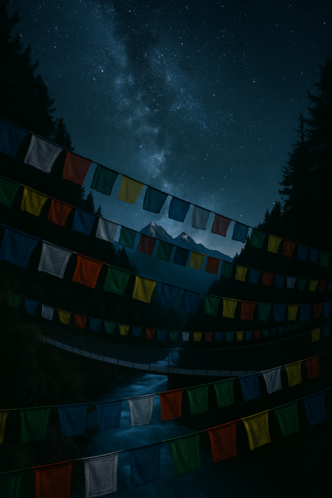 Each gust carries the written prayers across the landscape, dispersing blessings to all beings, seen and unseen. The act of hanging them is a gesture of hope—not for oneself alone but for all life. As the flags fade and fray under the sun, they are said to release their energy into the cosmos, teaching that beauty lies not in permanence but in the grace of impermanence.